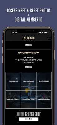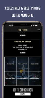 Welcome to the Eric Church App - the community for fans to connect with each other and enhance their experience all year round! Gain exclusive access to photos, videos, and BTS content as Eric travels across the country on tour - and more!