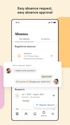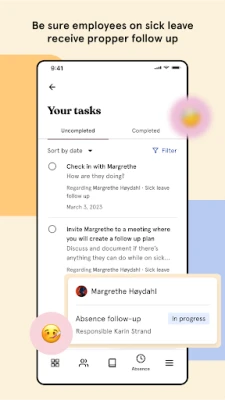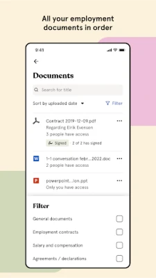 With Huma, you get: - Digital absence management: have full control of all absences in your organization. - All employee information and documents, whether related to a single employee or the entire organization. - Digital employment contracts with updated legal regulations from legal experts. - Easily accessible information with a modern employee handbook containing internal guidelines and laws and regulations. - Onboarding done right: simple and coordinated procedures for welcoming new employees. - Overview of all equipment assigned to employees. - Competency mapping and analysis.