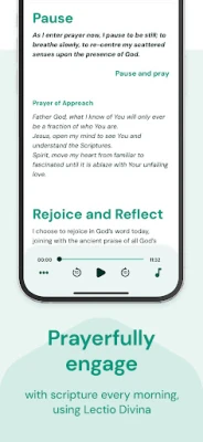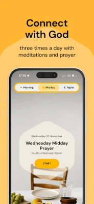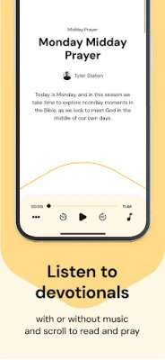 You can choose to listen to the devotional being read, with or without music; you can also read it for yourself.  Download morning, noon and night prayers a week in advance to listen or read wherever you are and save  your favourite devotionals from the last 30 days to return to.