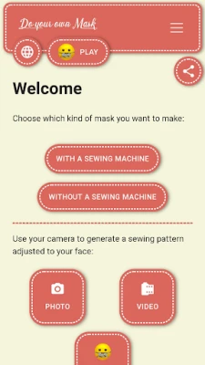 You can use your camera to detect the size and shape of your face using our face detection feature. It will generate a sewing pattern adapted to your face. You can also select and print standard patterns for kids or adults.