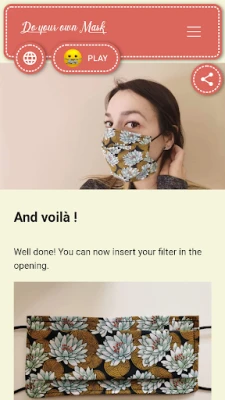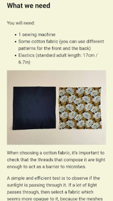 You can select two different kind of mask instructions : with a sewing machine or without a sewing machine. Both present pictures, easy to follow steps, and tips to assist the user.