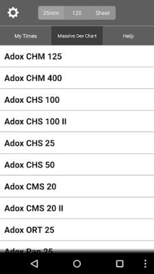 The #1 app for B&W film developing. The Massive Dev Chart Timer combines an advanced multi-step darkroom timer with an offline copy of the world's largest database of B&W film development times; maintained online since 1995 and currently including over 18,000 unique tried and tested entries unavailable elsewhere. If you are looking for a film developer timer, then there is no rival thanks to its advanced darkroom pro feature set, full customizability and superior performance.