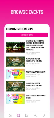 - View Events: Stay informed about upcoming student events across various venues. - Buy Tickets: Purchase tickets directly within the app – no more queues or hassle. - View Galleries: Relive memorable moments with photo galleries from past events. - Latest News: Get updates on guest appearances, performances, and special events. - Get Notifications: Stay in the loop for discounts, giveaways, and important announcements.