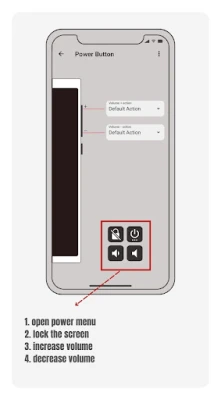 1. Open System's Default Power menu 2. Lock the Phone Screen 3. Volume buttons for Screen Locking