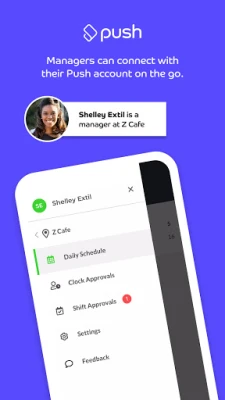 The Push Manager app allows you to forecast and track labor budgets against actual cost and manage, view, and create schedules and clock in’s in real-time. Streamline communication between managers and staff with the Push Manager App.