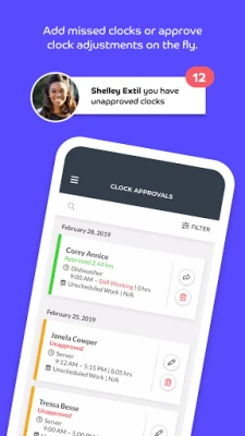 • Track labor budgets against actual costs in real-time. • View daily schedules for your workforce. • Perform clock in approvals, adjustments, and automations. • Manage employee shift swap and time-off requests. • Customize and switch between different locations and filtering views.