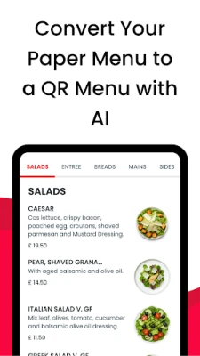 With our online QR code menu maker, transforming your paper menu into a dynamic digital QR code menu has never been easier or more intuitive. Simply take a photo of your menu, and our AI does the rest, creating a professional and easy-to-access QR menu that your guests can view instantly, no app downloads or sign-ups are required!
