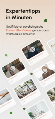 Entdecke Soulfi, die weltweit einzige Mental Health App für psychologische Soforthilfe via Video-Content. Mit unseren exklusiven, von echten Therapeuten erstellten Erste-Hilfe-Videos bietet Soulfi unmittelbare und professionelle Unterstützung in Momenten mentaler Herausforderungen und psychischen Belastungen. Die etwa 5-10 minütigen Videos werden auf Basis von wissenschaftlich fundiertem und langjährig angewandten Praxiswissen erstellt. Sie ermöglichen Dir, Deine Stimmung, akute Symptome von Panik, Stress oder Angst, Schlaflosigkeit etc. in Echtzeit zu erfassen und sofort zu stabilisieren.