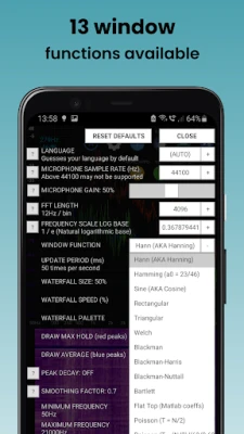 Speccy provides the most 'analysis window functions' (the 13 most popular for audio engineers) and, for your added peace of mind, the only permission Speccy needs is microphone access.
