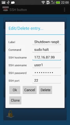 You can specify per button: - Label ( e.g. reboot raspberry or start application ) - Command to sent ( e.g. sudo reboot or sudo service httpd restart) - ip adres or hostname - username - password - Private key ( optional ) - ssh port