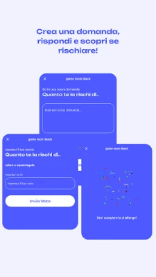 In "Room Mode", on the other hand, you can create a personal room or access one of your friends, where players will challenge each other in turns by writing risky questions and specifying the associated risk range. The other players will have to select a number within the range to avoid doing the action suggested by the question.