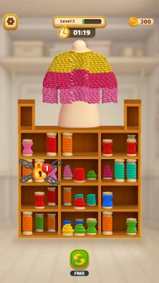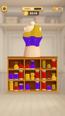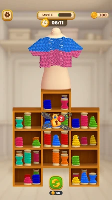 Sort colorful threads, merge them into stronger yarns, and watch as they magically weave beautiful dresses above! At the bottom, enjoy relaxing goods sort mechanics. At the top, your threads come to life, knitting stylish outfits in real time.