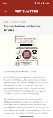 This app is designed to serve the needs of the Wet'suwet'en Nation, providing streamlined access to important information. Whether you’re looking to stay informed, participate in events, or explore opportunities, our app is here to support you. Download today to stay connected with Wet'suwet'en Nation!